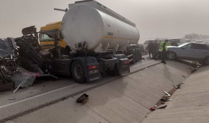Konya genelinde sabah saatlerinden itibaren etkili olan kum fırtınası, hayatı olumsuz etkiliyor. Alınan bilgiye göre, Cihanbeyli ilçesine bağlı Karabağ Mahallesi'nde 2'si yakıt tankeri, 2'si kamyon, 4'ü otomobil olmak üzere 8 aracın karıştığı zincirleme trafik kazası meydana geldi.