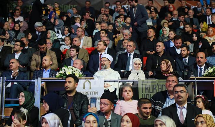 Kur'an-ı Kerim'i öğrenmedeki hedefin insanları karanlıktan aydınlığa çıkarmak olduğunu vurgulayan Erbaş, "Kur'an'ı hıfzederek zihnimizi, kalbimizi aydınlattık. Nur haline geldi adeta. Şimdi hayatımıza tatbik ederek, ömrümüzün sonuna kadar, onu diğer insanlar da ondan daha fazla istifade etsinler, karanlıktan, cehaletten kurtulsunlar. Rabbimizin emirleri doğrultusunda yaşasınlar, nehiylerinden uzak dursunlar diye büyük bir mücadelenin içerisine gireceğiz." diye konuştu.