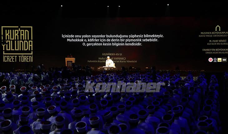 Konya Mustafa Büyükkaplan Anadolu İmam Hatip Lisesi Hafızlık İcazet Merasimi, bugün gerçekleştirildi. Törene TBMM Başkanı Mustafa Şentop, Diyanet İşleri Başkanı Prof.Dr. Ali Erbaş ve İlim Yayma Vakfı Mütevelli Heyeti Başkanı Bilal Erdoğan katıldı. İşte 750 hafız için düzenlenen o muhteşem tören…