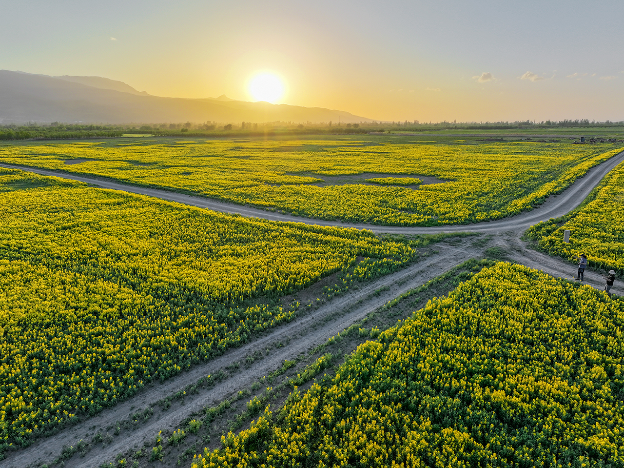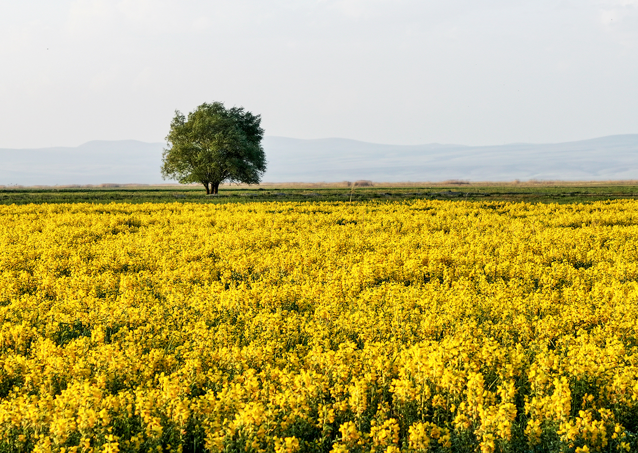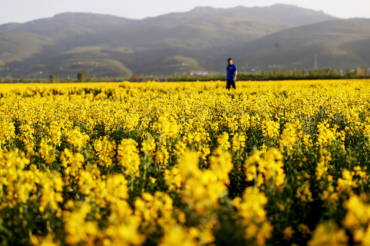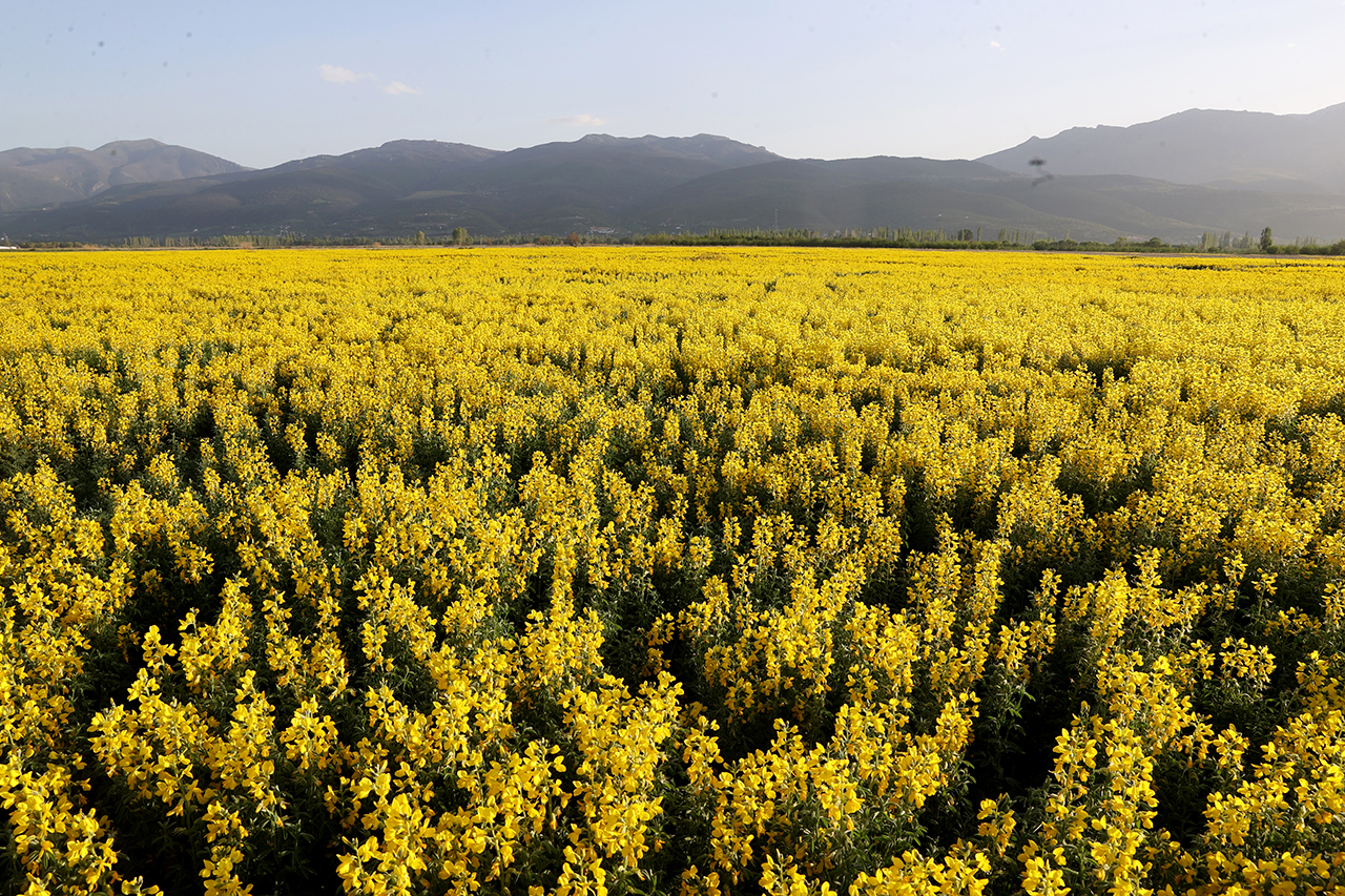 Akşehir Gölü'nün kıyısında, Gölçayır Mahallesi yakınlarında 150 dekarlık arazide Eber sarısı çiçeklendi.