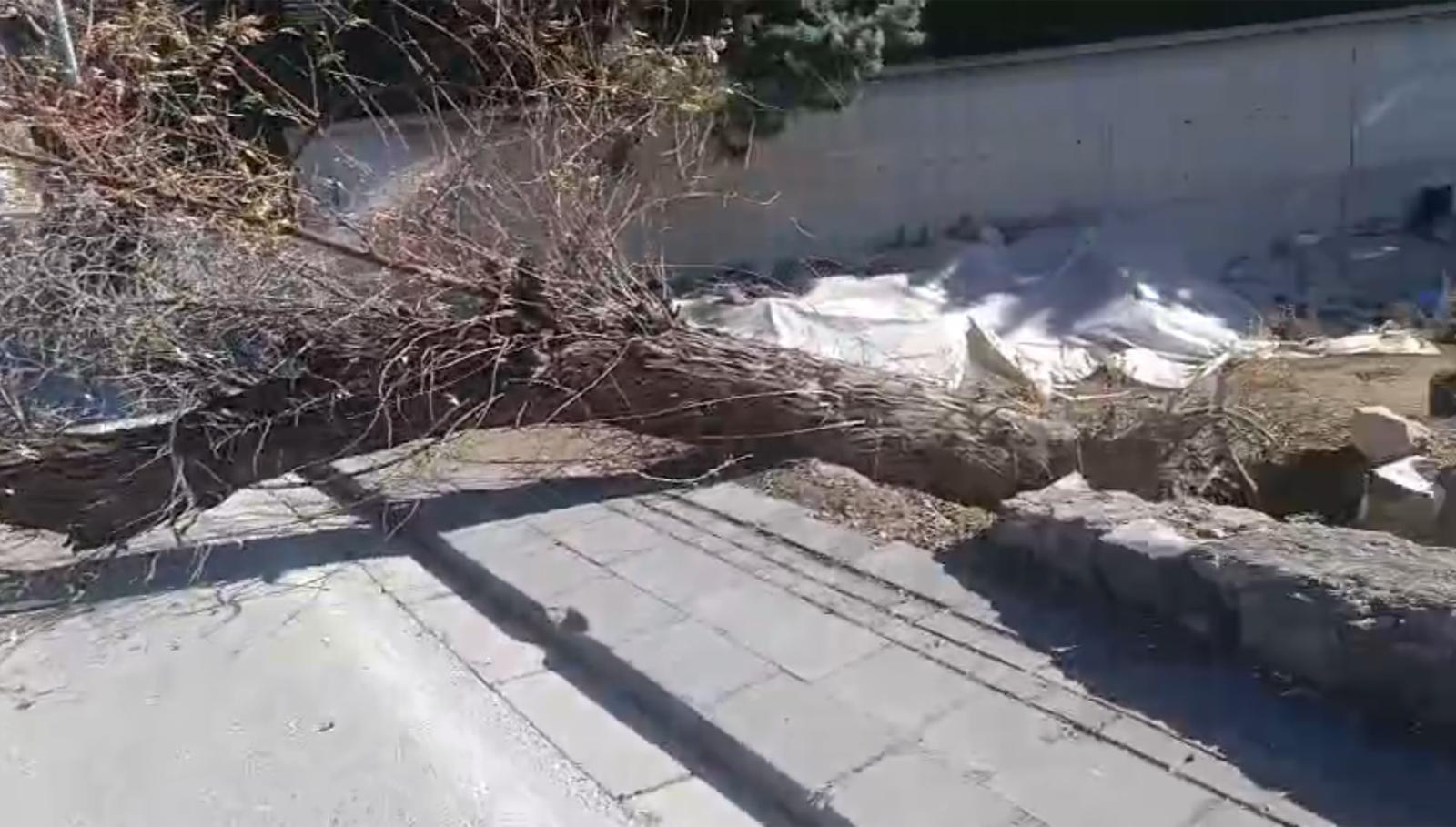 Edinilen bilgiye göre bölgede etkisini artıran kuvvetli rüzgar, bir ağacın yerinden sökülmesine neden oldu.