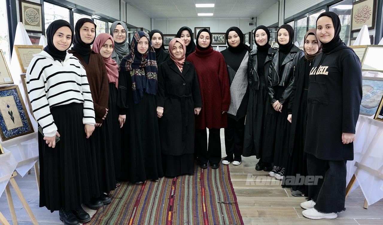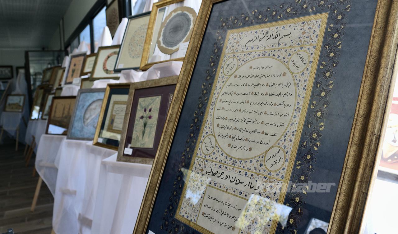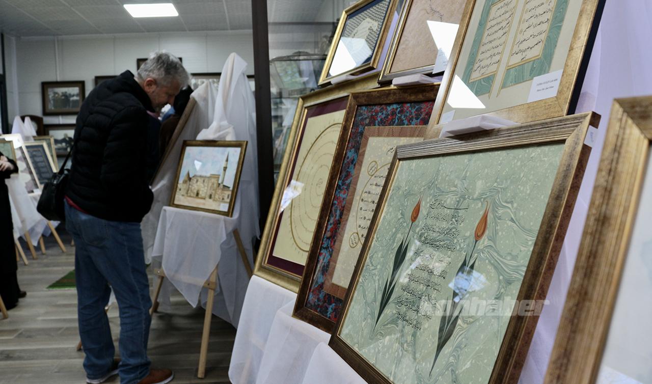 Konya Anadolu İmam Hatip Lisesi Geleneksel Sanatlar Bölümü öğrencilerinin hüsnühat, tezhip ve ebru sanatlarından hazırladığı eserlerden oluşan sergide elde edilen gelirle depremzedeler için konteyner alınacak.