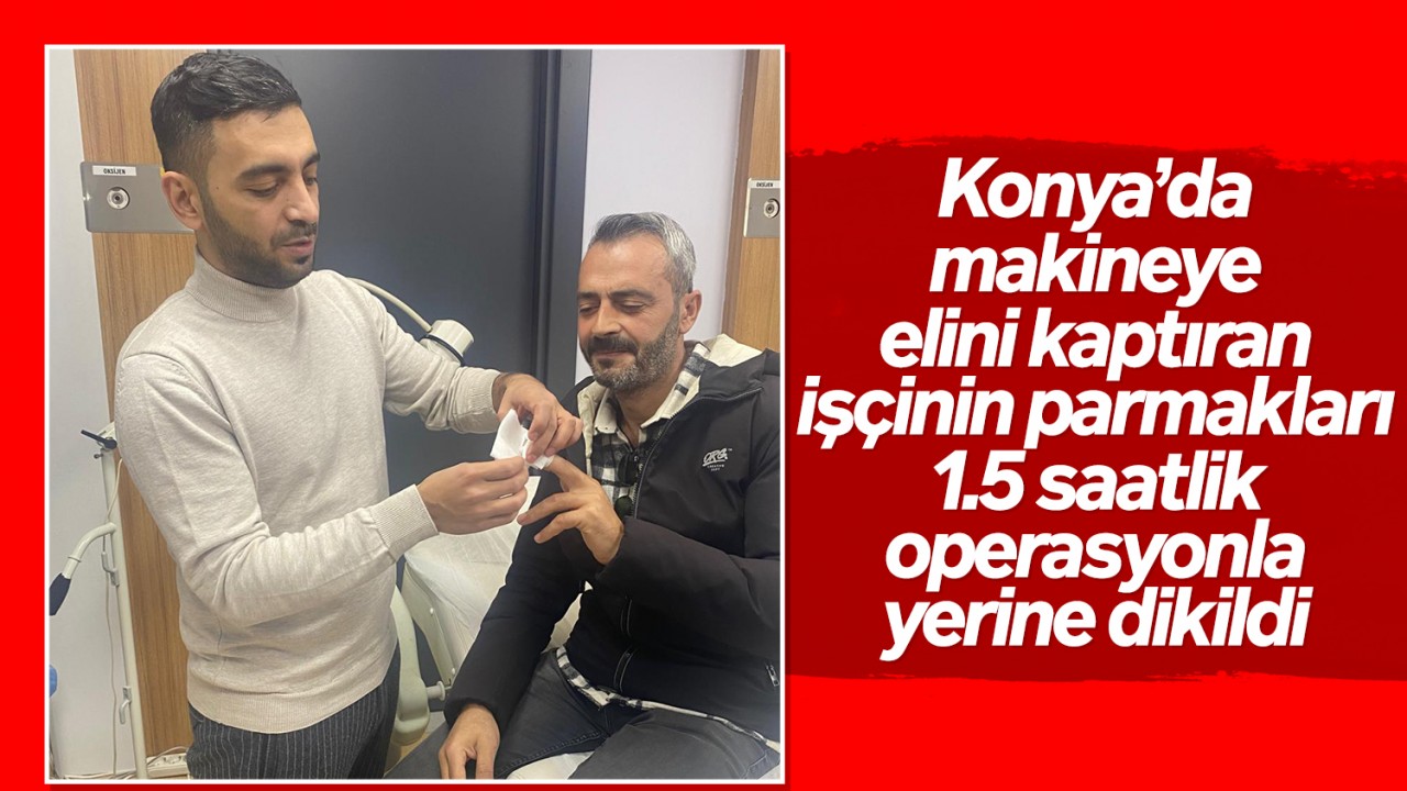 Konya’da yaşayan 42 yaşındaki Mehmet Demiröz’ün kopan parmağı, 1,5 saat süren başarılı operasyonla dikildi.