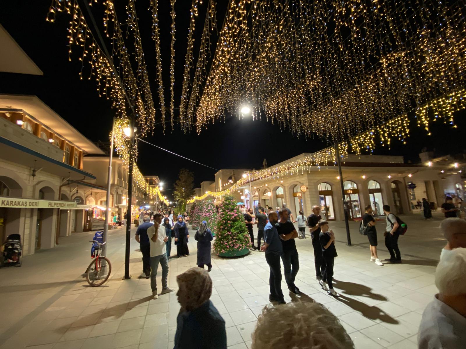 Belediyeler tarafından cemaate ikramların yapıldığı gecede, ışıklandırılan Türbeönü Çarşısı’nda da yoğunluk yaşandı.