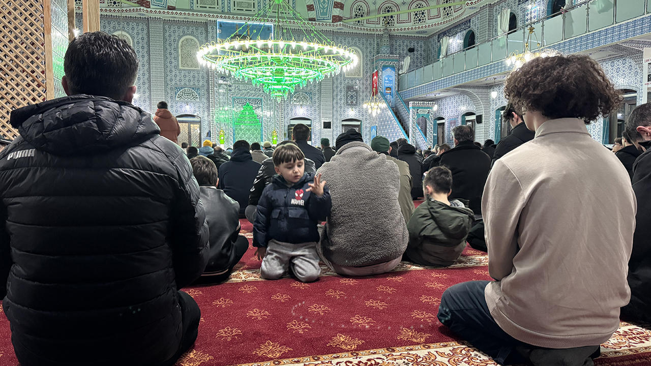 Aktekke Camisi'nin dolması nedeniyle cemaatin bir kısmı soğuk havaya rağmen namazını cami avlusunda kıldı.