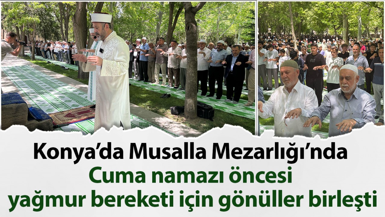 Konya Musalla Mezarlığı içerisinde yer alan namazgahta, Cuma namazı öncesinde anlamlı bir etkinlik gerçekleştirildi. Konya İl Müftüsü Prof. Dr. Ali Öge’nin öncülüğünde cemaatle bir araya gelinerek, yaşanan kuraklık ve yağmur ihtiyacına dikkat çekildi.