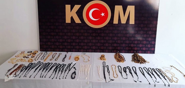 Yapılan aramalarda, "Nesli Tehlikede Olan Yabani Hayvan ve Bitki Türlerinin Uluslararası Ticaretine İlişkin Sözleşme" kapsamında olan 121 parça bin 724 gram ağırlığında kehribar, bufalo boynuzu ve Caretta caretta kaplumbağa kabuğuyla yapılmış tesbih, kolye ve bileklik bulundu.