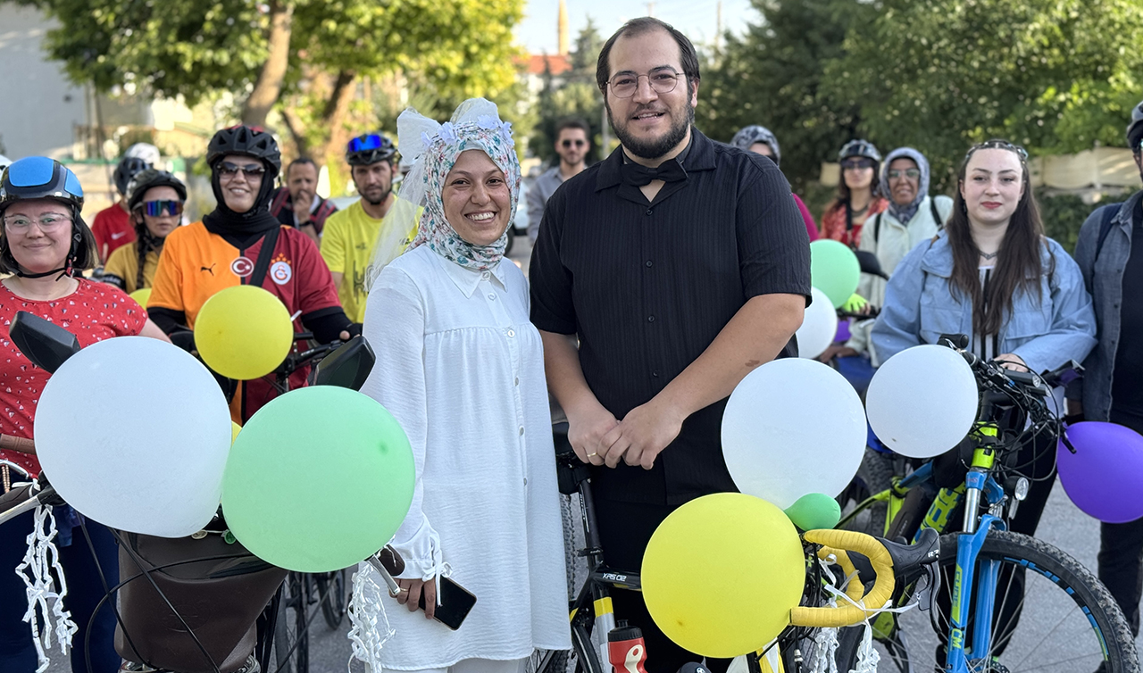 Yaklaşık bir hafta önce nişanlanan Yunus Emre Aydemir ile Tuba Küçükkayacı, düğünlerdeki gürültü kirliliğine dikkati çekmek için bisiklet kullanıcılarıyla etkinlik düzenlemeye karar verdi.