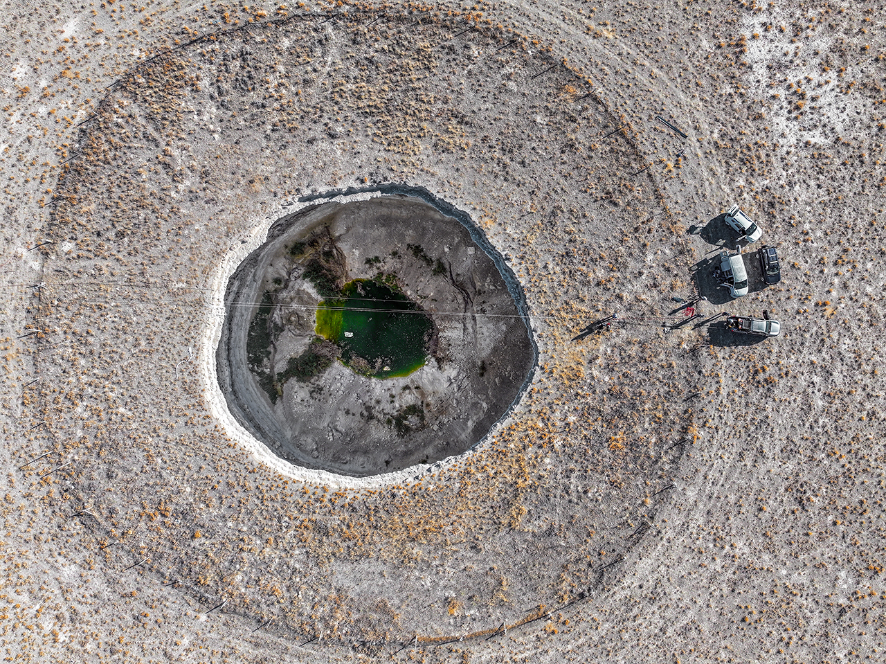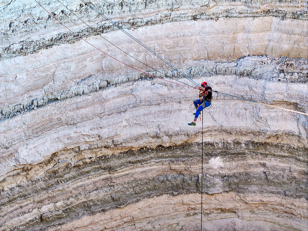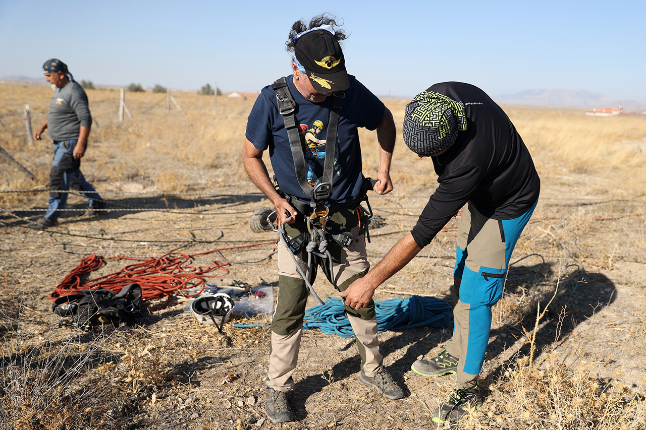 Konya'nın Karapınar ilçesinde yeraltı suyu kullanımı ve kuraklığın yol açtığı obruk tehlikesine dikkati çekmek isteyen bir grup profesyonel dağcı, yaklaşık 40 metre derinliğindeki İnoba Obruğu'na iniş gerçekleştirdi.