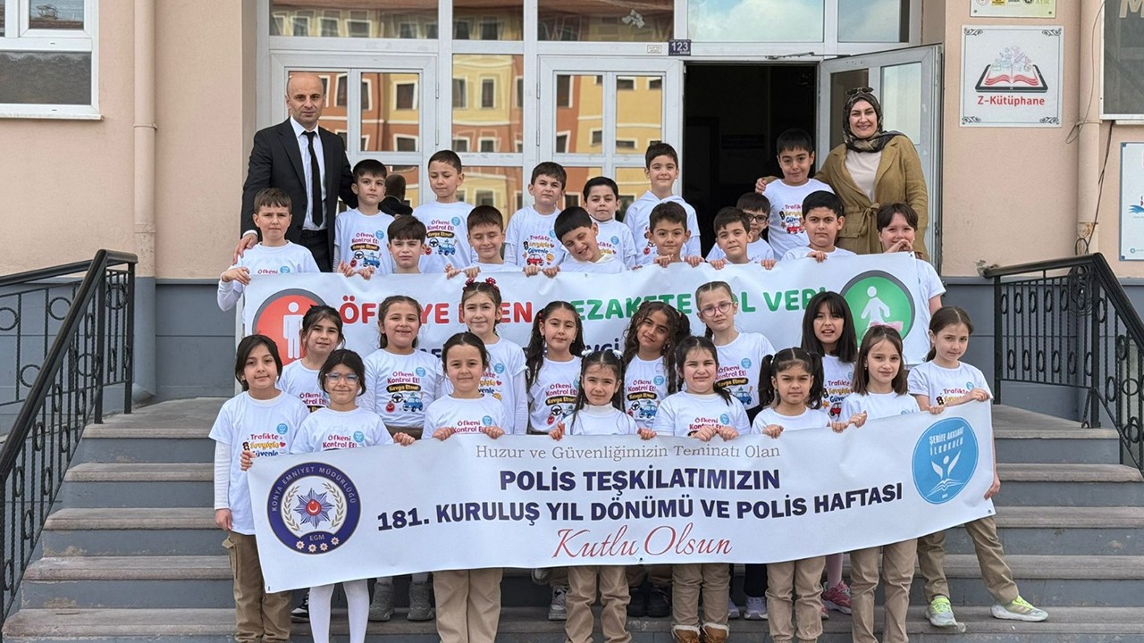 Konya’da, Şerife Akkanat İlkokulu öğrencileri 10 Nisan Türk Polis Teşkilatı’nın 181. Kuruluş Yıl Dönümü ve Polis Haftası dolayısıyla sürücülerde trafik bilincinin oluşturulması amacıyla “Öfkeye Fren, Nezakete Yol Ver” etkinliğini gerçekleştirdi.