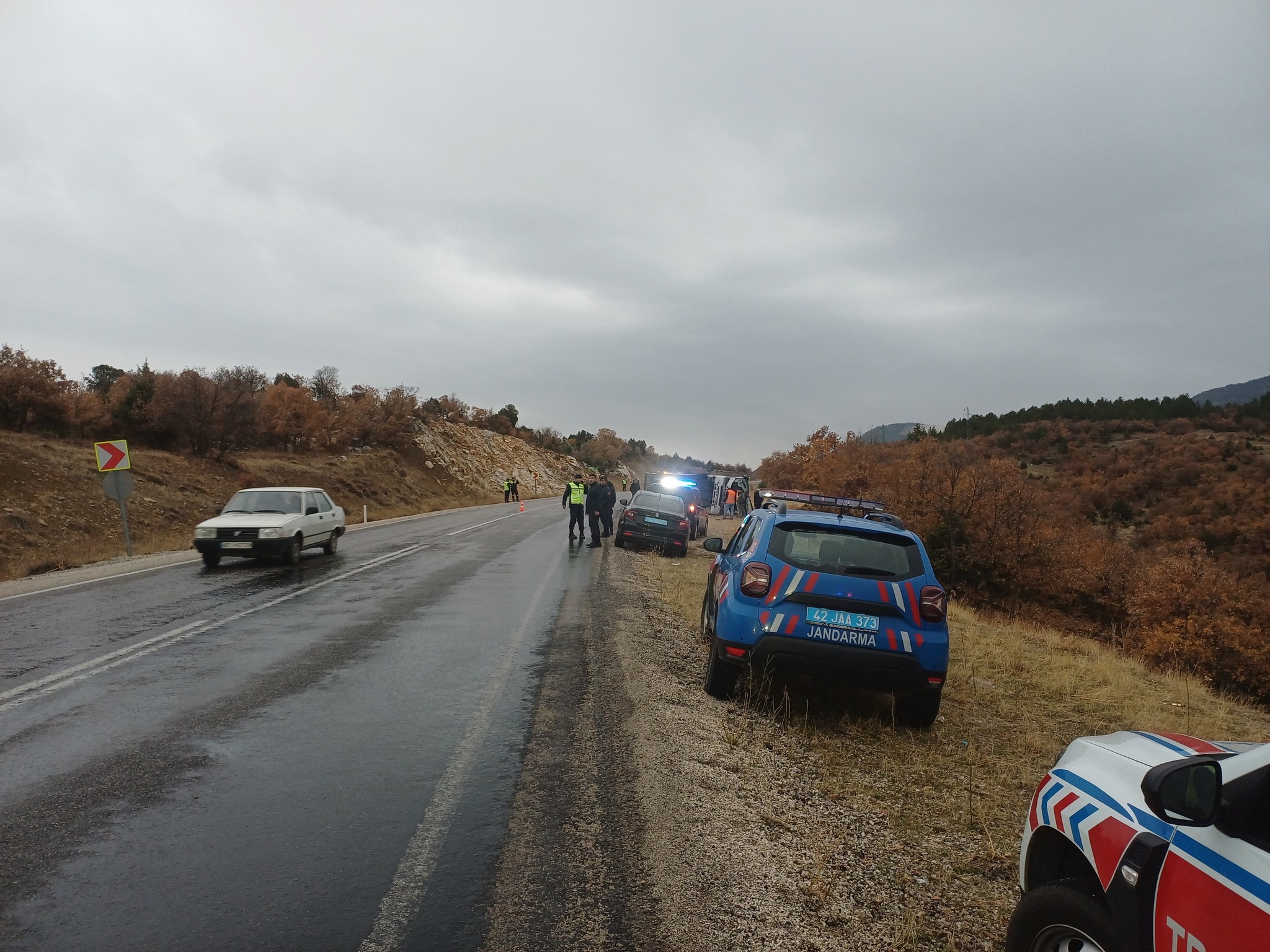 Kaza, sabah saat 07.45 sıralarında Beyşehir ilçesi Huğlu Akseki karayolu üzerinde meydana geldi. Alınan bilgiye göre Durmuş K. idaresindeki 42 GBJ 81 plakalı okul servisi, yağmur nedeniyle kayganlaşan yolda sürücüsünün kontrolünden çıkarak devrildi.