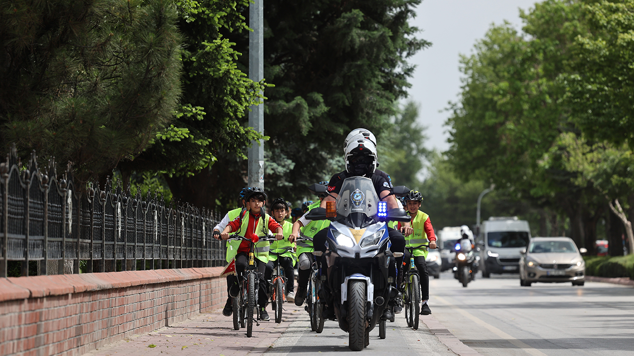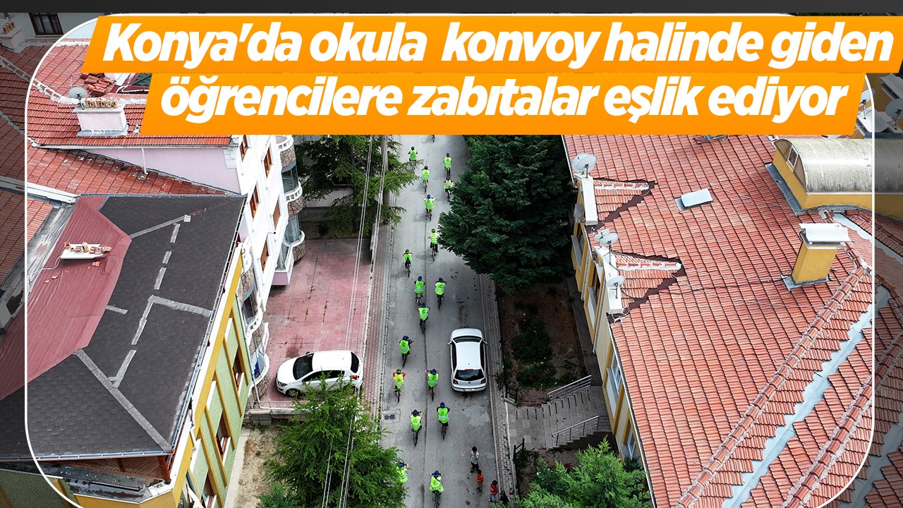 Türkiye'nin en uzun bisiklet yolu ağına sahip Konya'da hayata geçirilen projeyle motorize zabıtaların eşliğinde öğrenciler güvenli bisiklet yoluyla okula gidiyor.