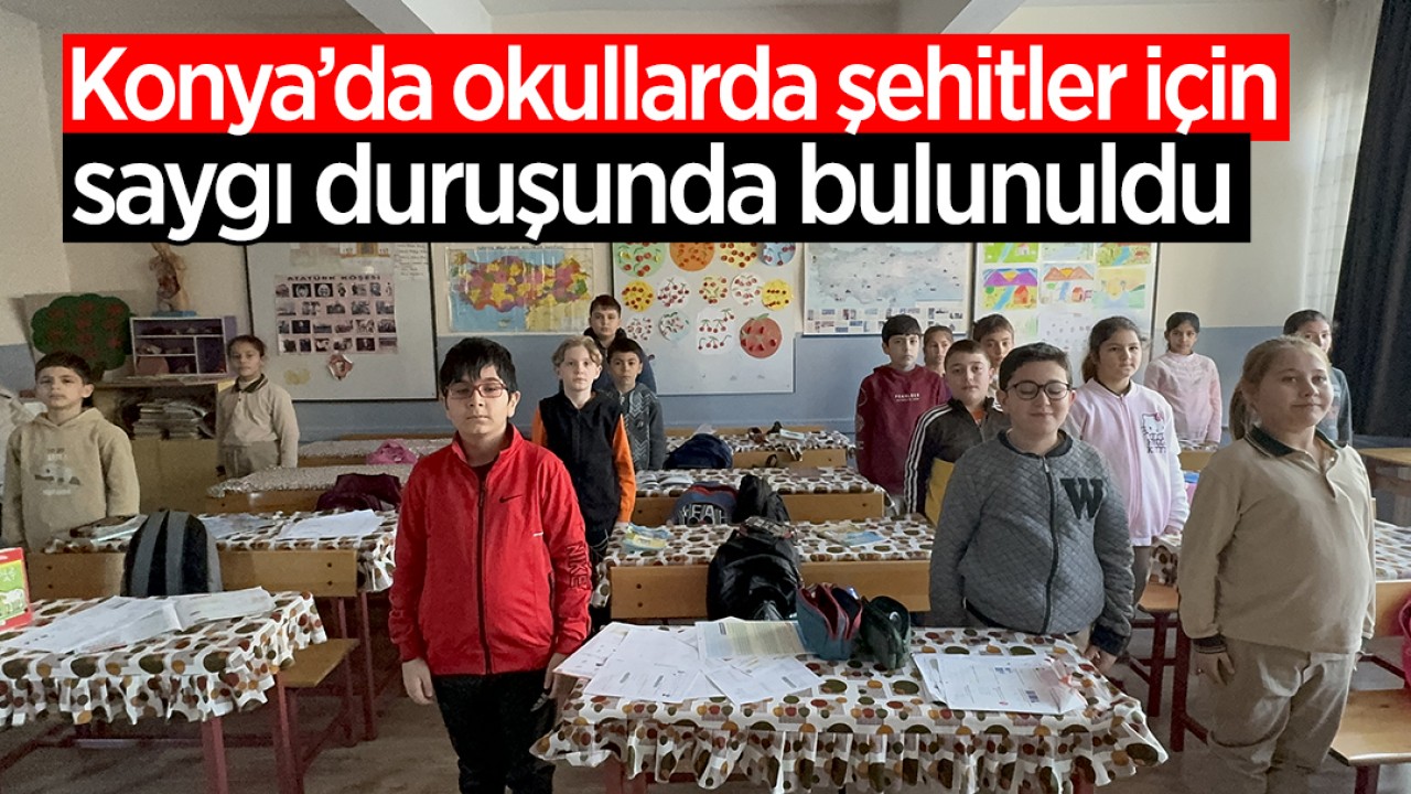 Konya'daki okullarda da Pençe-Kilit Harekat bölgesinde şehit olan askerlerimiz için bayrak töreni öncesinde bir dakikalık saygı duruşunda bulunuldu.