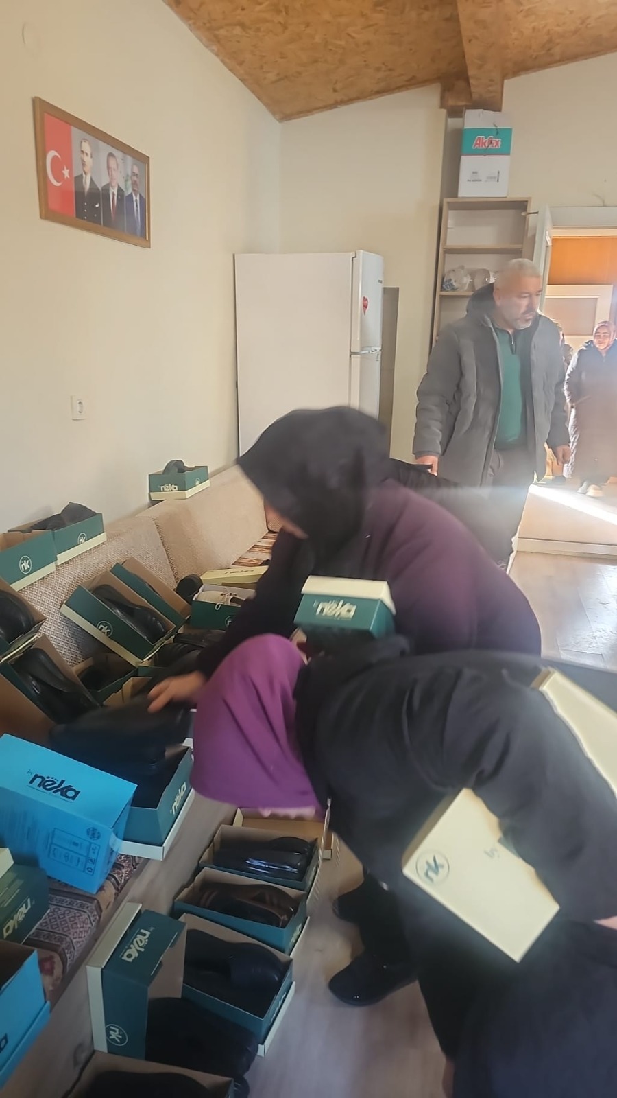 Konya'nın Meram ilçesindeki Muhtar Mustafa Topal, hayırseverlerin desteğiyle temin edilen 100 çift ayakkabıyı ihtiyaç sahibi ailelere ulaştırarak gönülleri ısıttı.