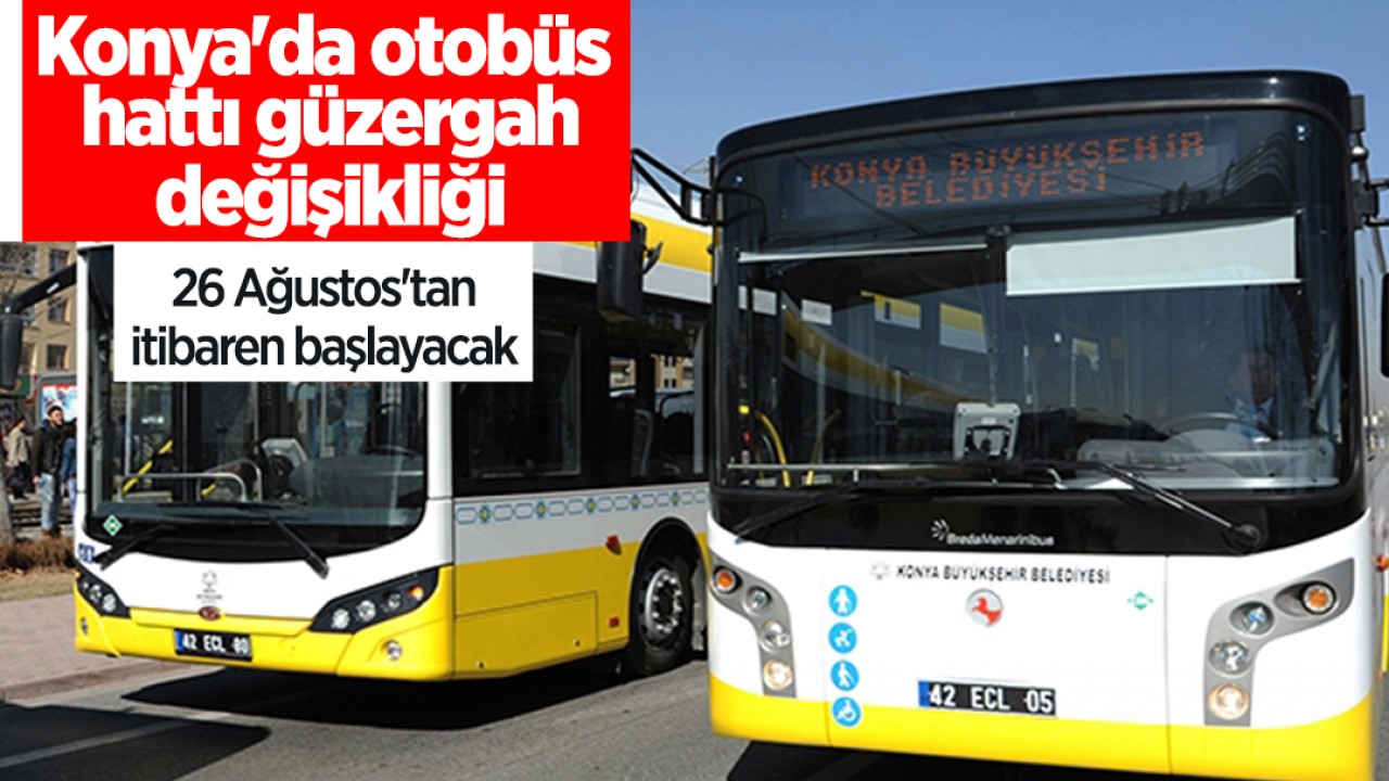 Konya AKOM sosyal medya hesabından yaptığı paylaşımda 26 Ağustos Pazartesi gününden itibaren yol çalışması sebebiyle 12,14,76 ve 94 numaralı otobüs hatlarının güzergahının değiştiğini duyurdu.