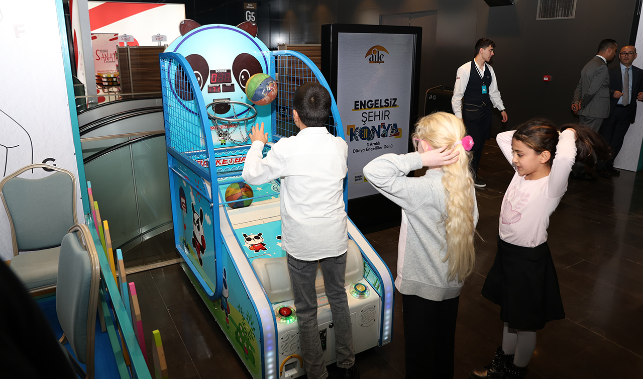 Program öncesinde Konya Büyükşehir Belediyesi tarafından fuaye alanına kurulan; karaoke etkinliği, basketbol oyunu, işaretin sesi oyunu, dokun tahmin et oyunu, dokunsal sayı eşleştirme gibi oyun alanlarında özel bireyler kendileri için hazırlanan akşamın keyfini çıkardı.