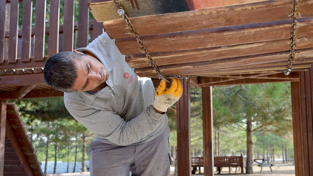 Meram Belediyesi Park ve Bahçeler Müdürlüğü Ekipleri tarafından gerçekleştirilen çalışmalar çerçevesinde ağaçların bakımları ve ilaçlamaları yapılıyor, budama ve peyzaj işlemleri gerçekleştiriliyor. Öte yandan sezon boyunca parklarda zarar gören çocuk oyun alanları, kent mobilyaları ve kameriyeler de elden geçirilerek onarılıyor.