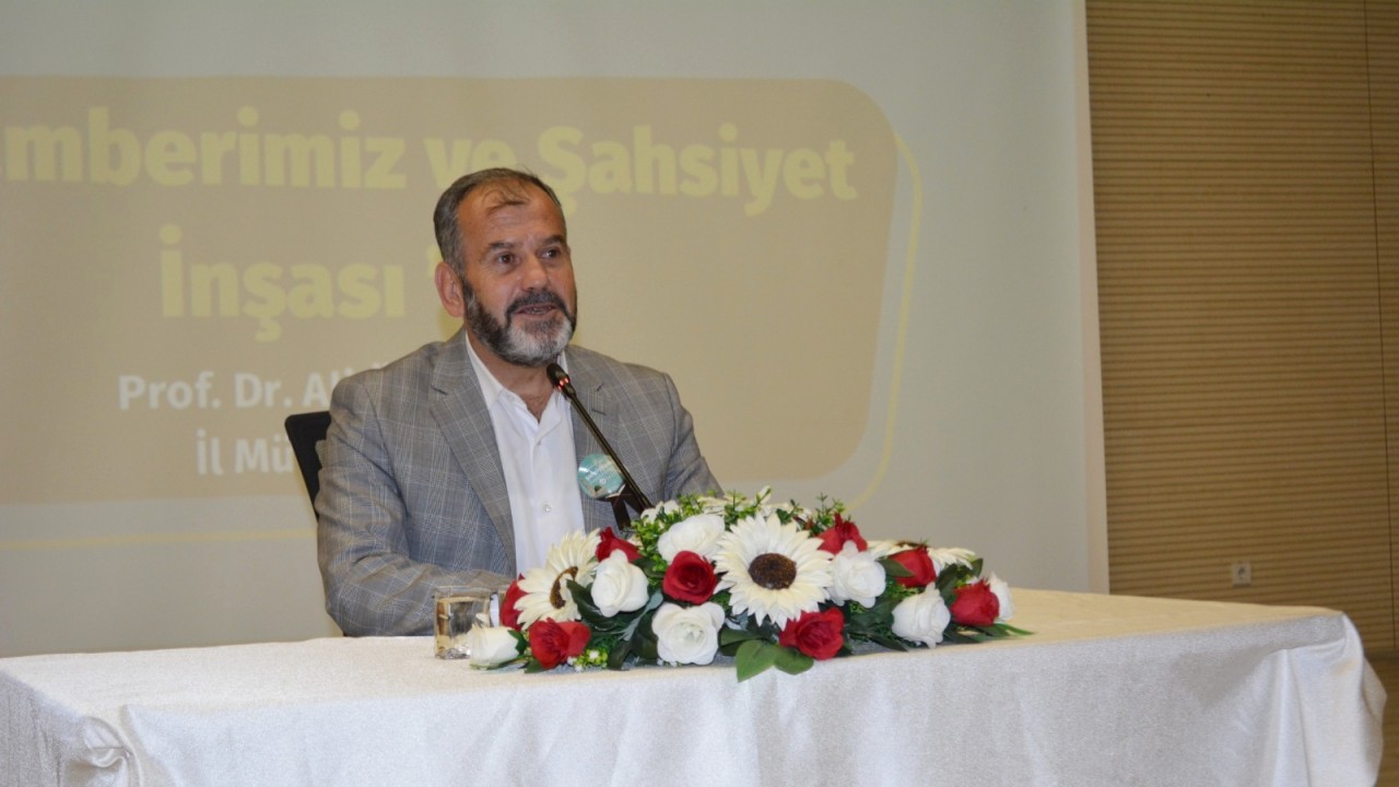 İlçe Müftüsü Yıldız'ın açılış konuşmasının ardından programa konuşmacı olarak katılan İl Müftüsü Prof. Dr. Ali Öge, Müslüman şahsiyetinin inşa sürecinde Kur'an ve Sünnet’in temel kaynaklar olduğunu vurgulayarak İslam’ın ahlaki değerlerinin bireylerin karakterini nasıl şekillendirdiğine ve kişisel gelişimlerine nasıl yön verdiğine dair kapsamlı bir analiz sundu