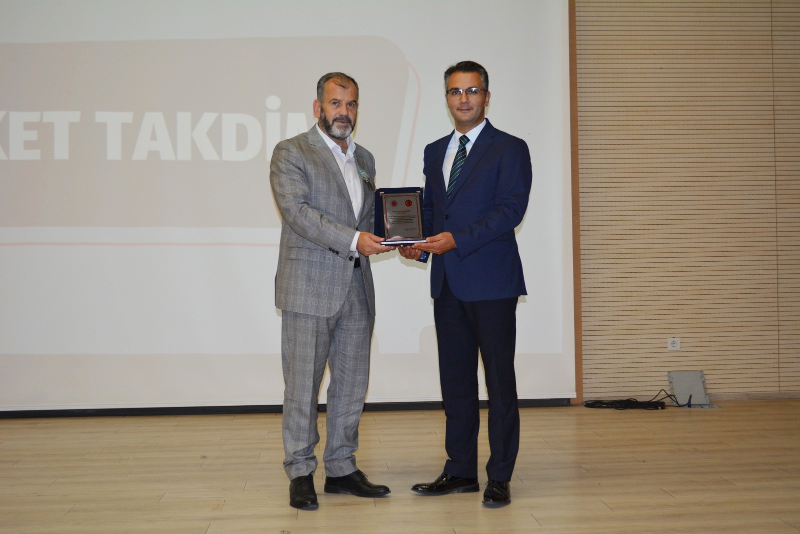 Konferansın sonunda İlçe Kaymakamı Canpolat, İl Müftüsü Prof. Dr. Öge'ye teşekkür plaketi takdim etti.