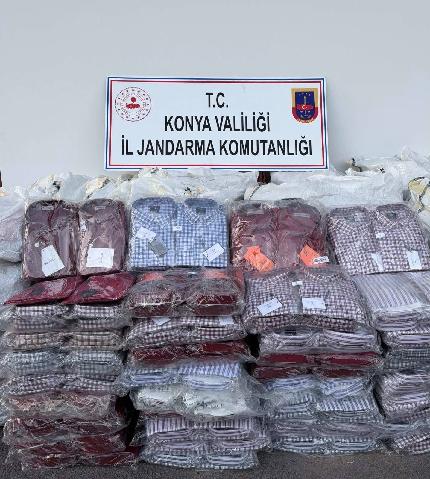Konya İl Jandarma Komutanlığı ekiplerince yürütülen çalışmalar kapsamında düzenlenen operasyonda, piyasa değeri yaklaşık 4 milyon 151 bin 500 TL olan faturasız 8 bin 303 adet gömlek ele geçirildi.