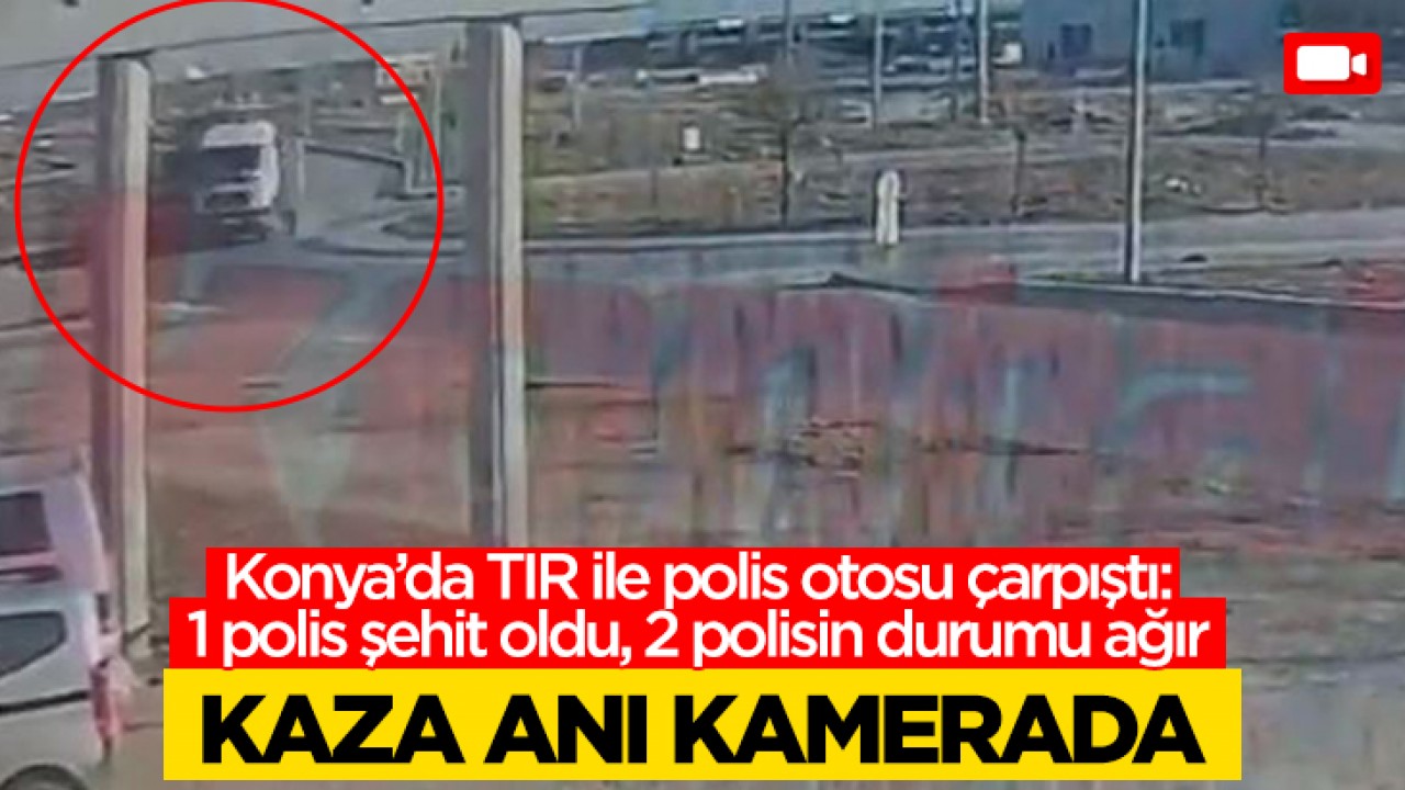 Konya'nın Karatay ilçesinde TIR ile polis otosu çarpıştı. Kazada 1 polis memuru şehit olurken, 2 polis memuru yaralandı. Öte yandan kaza anına ilişkin güvenlik kamerası ortaya çıktı.