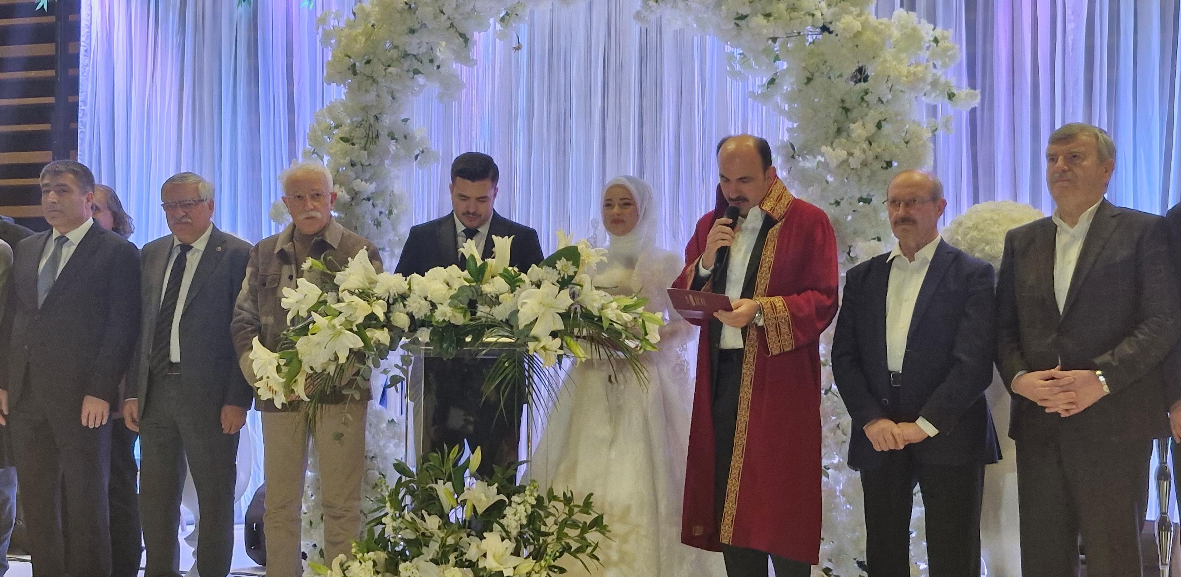 Selçuklu Kongre Merkezinde gerçekleştirilen düğün törenine Ak Parti İl Başkanı Fatih Özgökçen, Ak Parti Konya Milletvekilleri Mustafa Hakan Özer, Latif Selvi ve Tahir Akyürek, Konya Büyükşehir Belediye Başkanı Uğur İbrahim Altay, İlçe Belediye Başkanları, Oda Başkanları, Necmettin Erbakan Üniversitesi, Nevşehir Hacı Bektaş Veli Üniversitesi, Anadolu Üniversitesi, Karamanoğlu Mehmetbey Üniversitesi Rektörleri, Akademisyenler ve çok sayıda davetli katıldı.