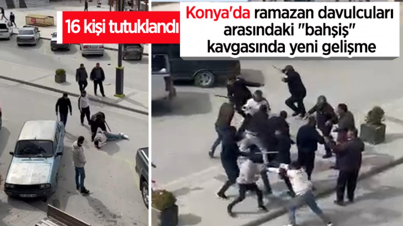 Konya'nın Kulu ilçesinde akraba olan ramazan davulcuları arasında çıkan kavgaya karışan 16 kişi tutuklandı.