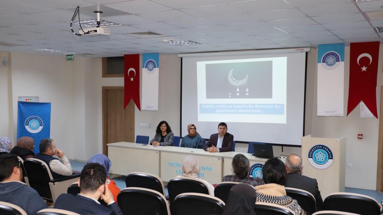 Necmettin Erbakan Üniversitesi (NEÜ) Meram Meslek Yüksekokulunda (MYO) düzenlenen seminerde “Ramazanda Sağlıklı Beslenme ve Gıda Güvenliği” konusunda önemli bilgiler verildi.