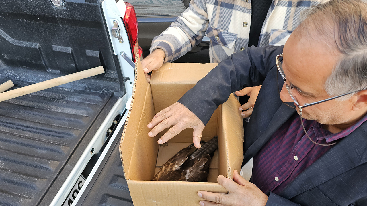 Yaralı şahin, Kulu Belediyesi Tarımsal Hizmetler Müdürü Ramazan Karakaya tarafından tedavisinin yapılması için Doğa Koruma ve Milli Parklar Müdürlüğü Cihanbeyli Şefliğinden gelen ekiplere teslim edildi.