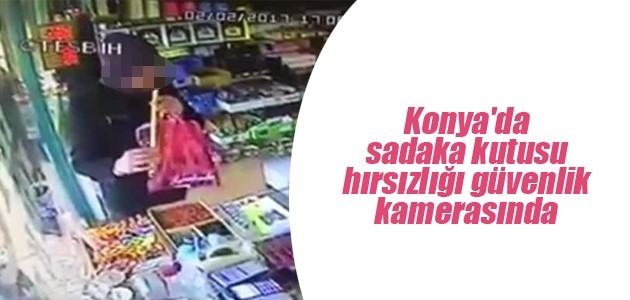 Konya'da bir iş yerinden sadaka kutularını çalan şüpheli, güvenlik kameralarınca görüntülendi.