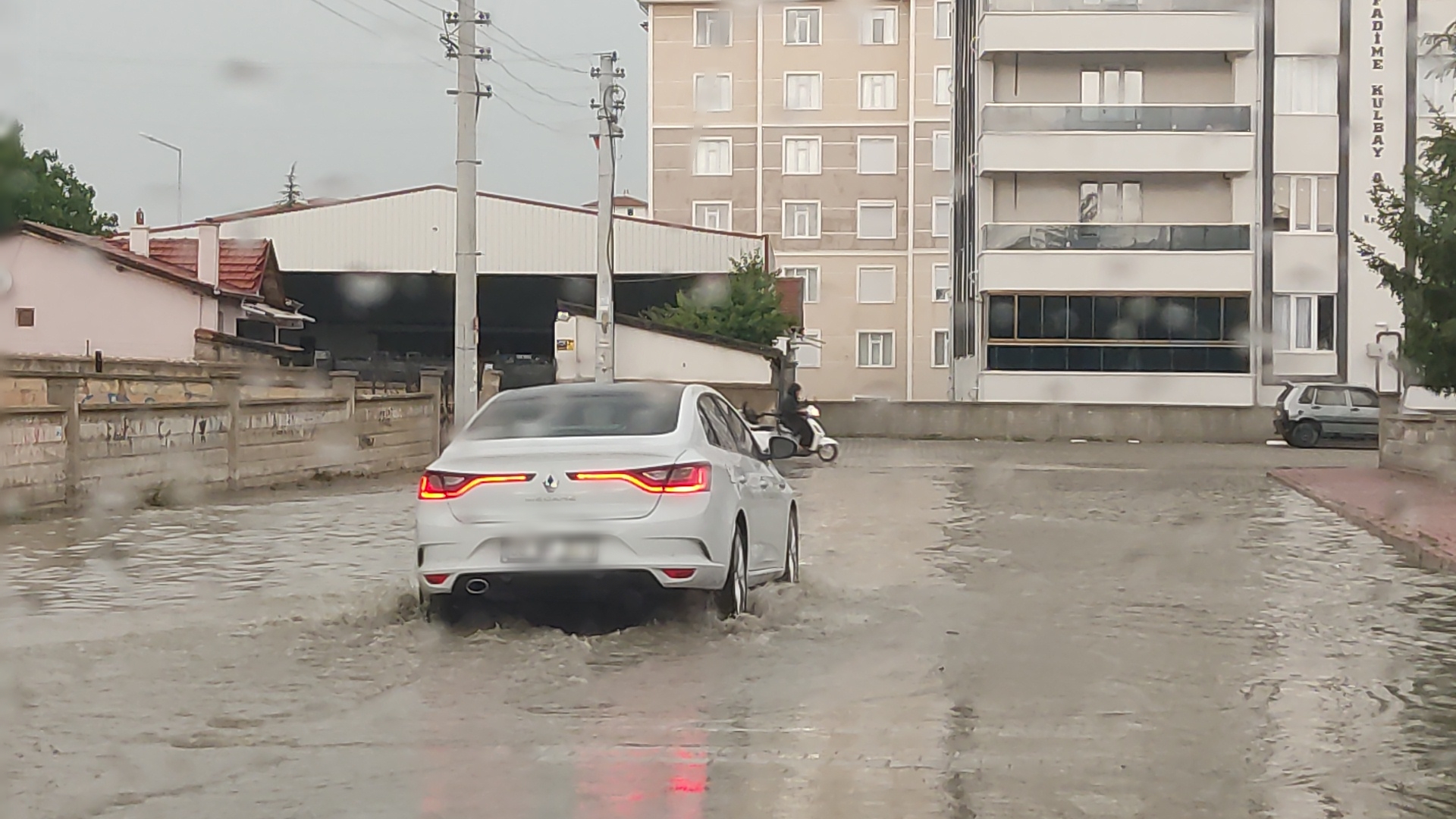 Konya'nın Kulu ilçesinde etkili olan yağış nedeniyle bazı binaların bodrumlarıyla park ve bahçeler sular altında kaldı. Bir petrol istasyonuna isabet eden yıldırım ise elektrik aksamına zarar verdi.