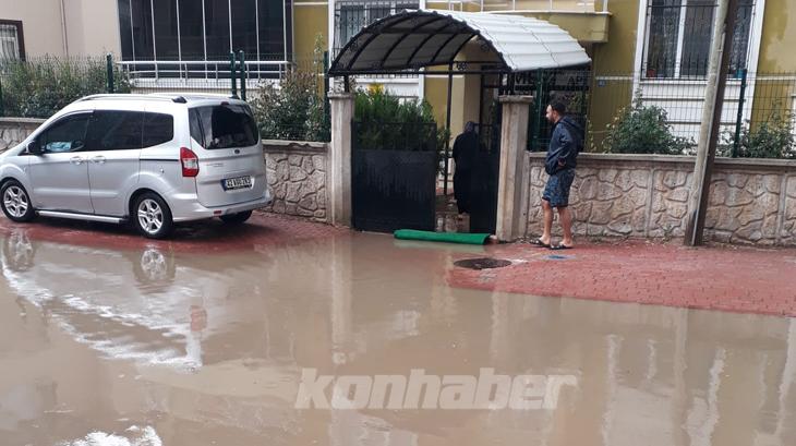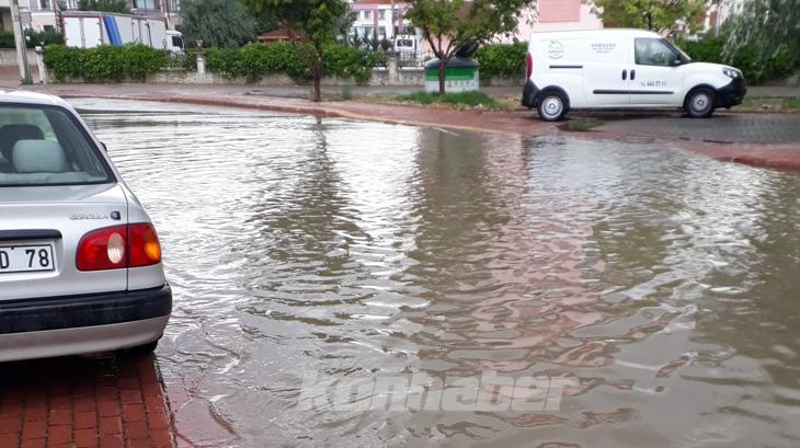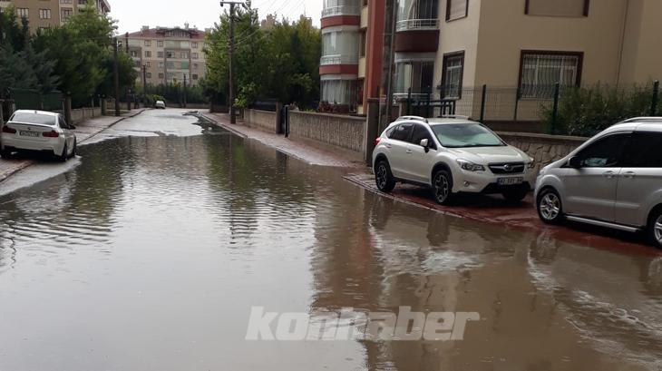 Konya’da öğleden sonra başlayan yağmur sele neden oldu. Sokak ve caddelerde oluşan su birikintileri sürücülere zor anlar yaşattı.