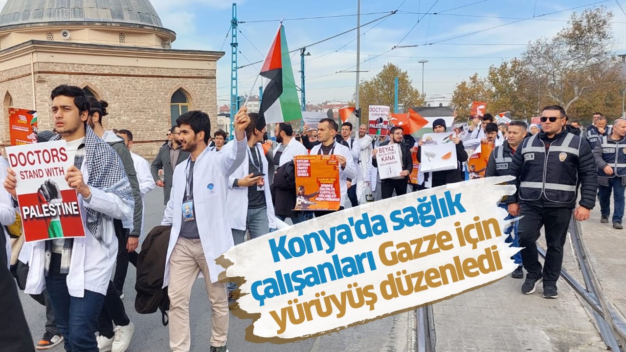 Konya'da sağlık çalışanları, Gazze'de yaşananlara dikkat çekmek amacıyla giydikleri beyaz önlüklerle yürüyüş düzenledi.
