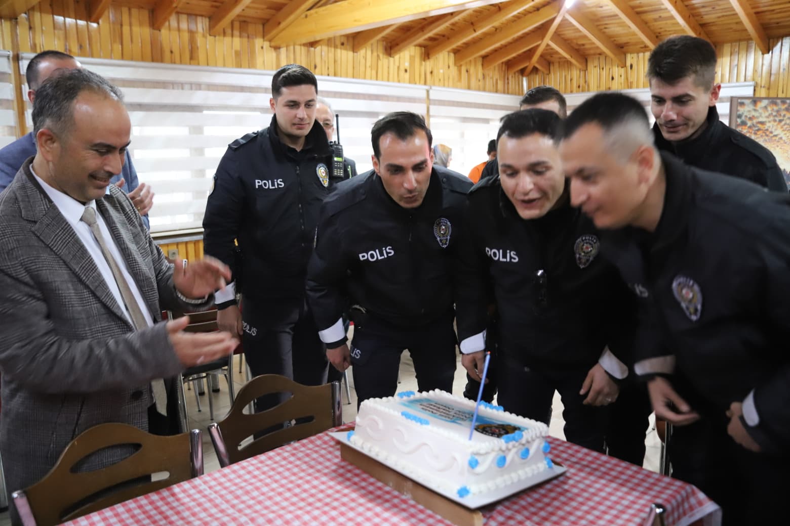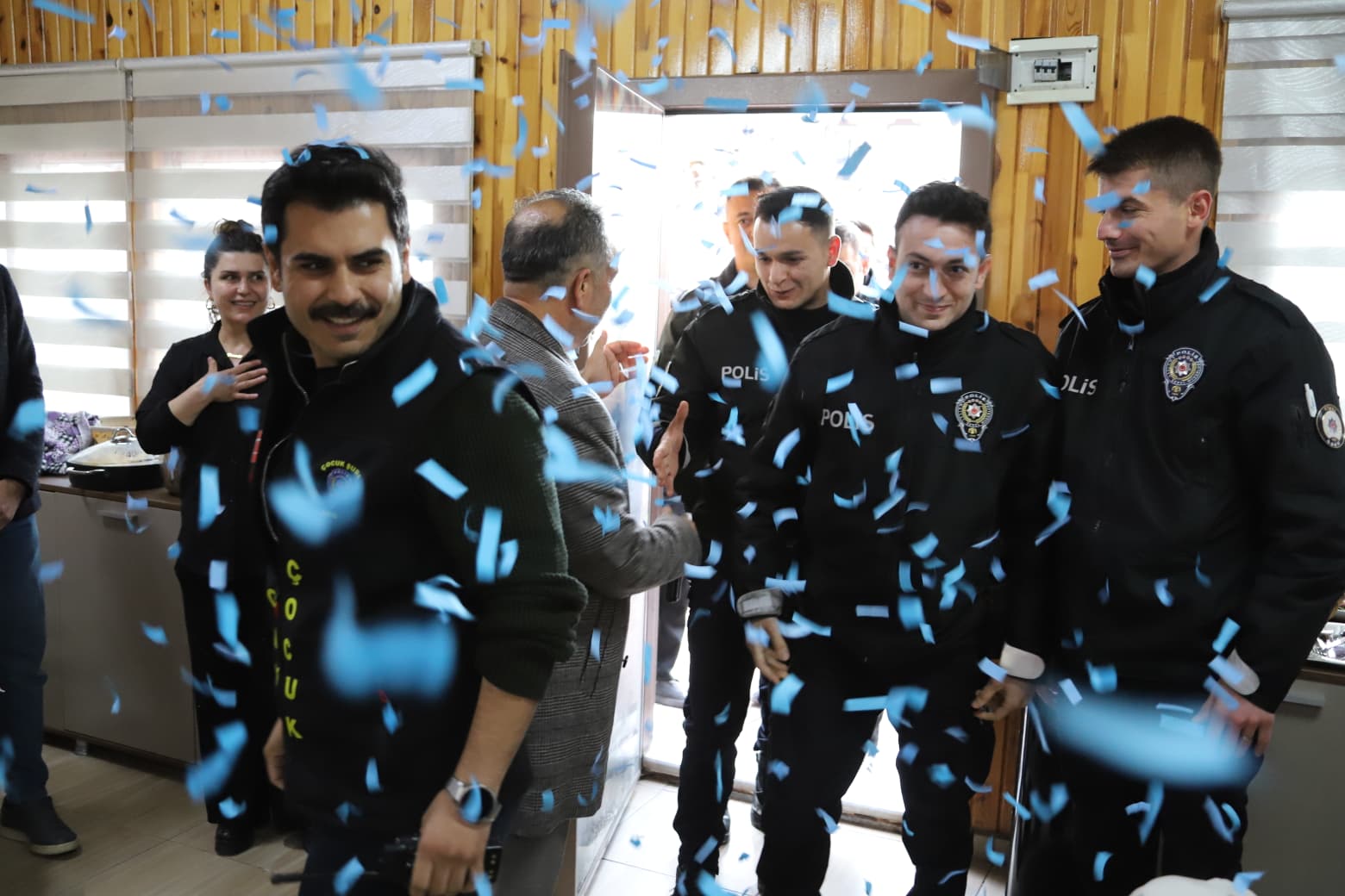 Hazırlanan sürpriz karşısında duygu dolu anlar yaşayan emniyet mensupları, kendileri için hazırlanan pastayı çocuklarla birlikte keserek tebrikleri kabul etti.