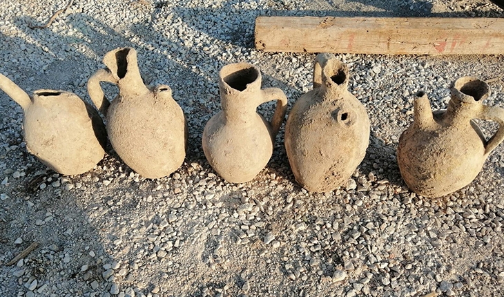 Adrese giden ekiplerinin yaptığı kontrolde 5 adet bazı kısımları kırık halde su testisi şeklinde objelerin kazı esnasında bulunduğu ve şantiye alanında muhafaza altına alındığı görüldü.