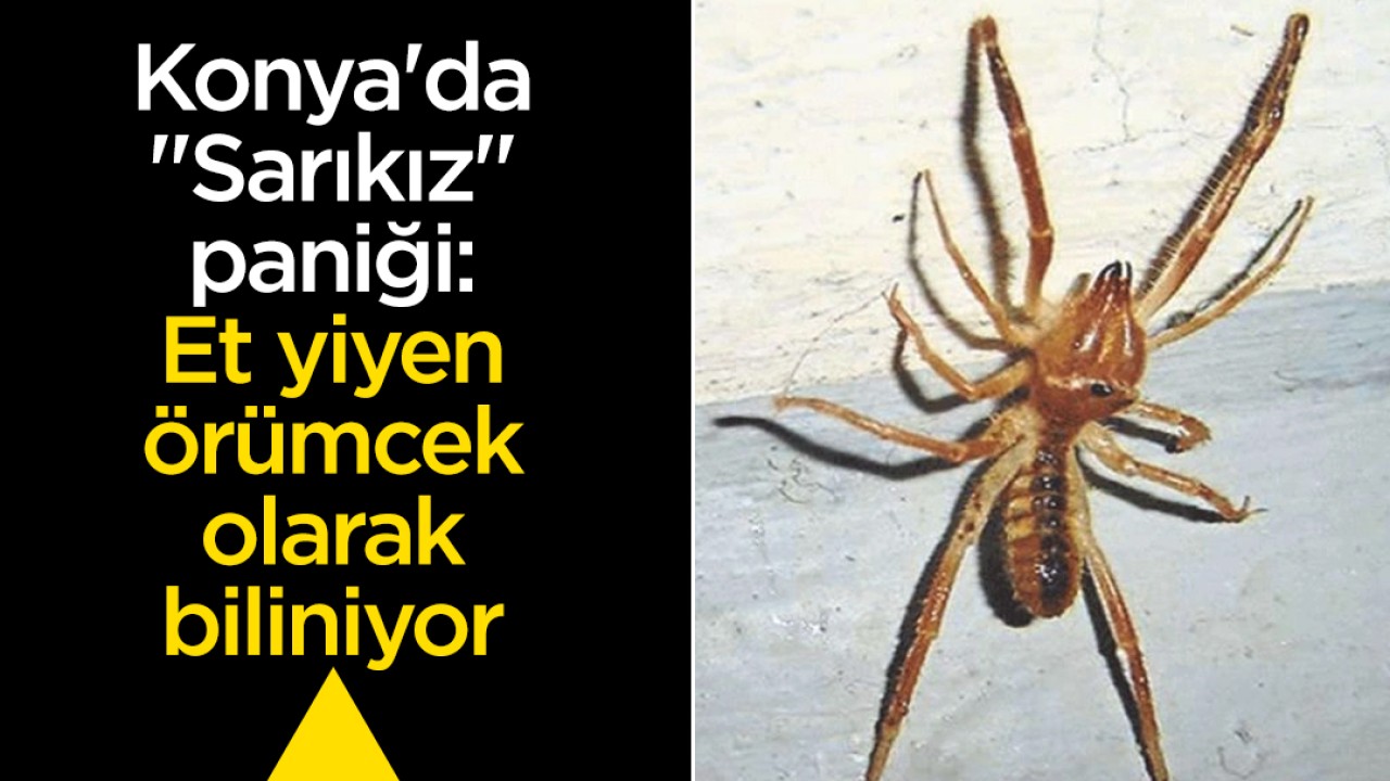 Konya'nın Kulu ilçesinde, halk arasında "et yiyen örümcek" ve "Sarı Ömer" olarak bilinen etobur (sarıkız) örümceği görüldü.