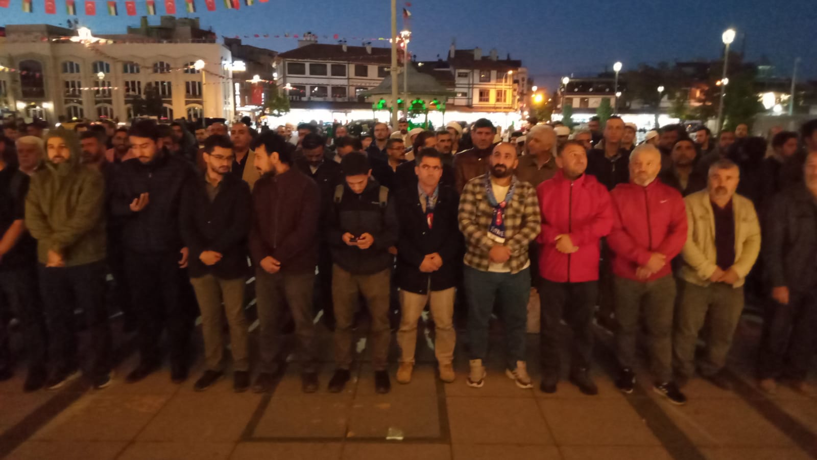 Konya'da, katil İsrail tarafından şehit edilen Hamas lideri Yahya Sinvar için bugün (18 Ekim Cuma) Sultan Selim Camisi önünde akşam namazına müteaikip kılınan gıyabi cenaze namazı kılındı ve ardından Filistin için dua edildi.