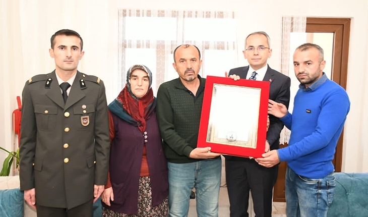 Pençe-Kilit Harekatı bölgesinde yıldırım düşmesi sonucu şehit olan Piyade Uzman Çavuş Mustafa Işık'ın Konya'daki ailesine şehadet belgesi teslim edildi.