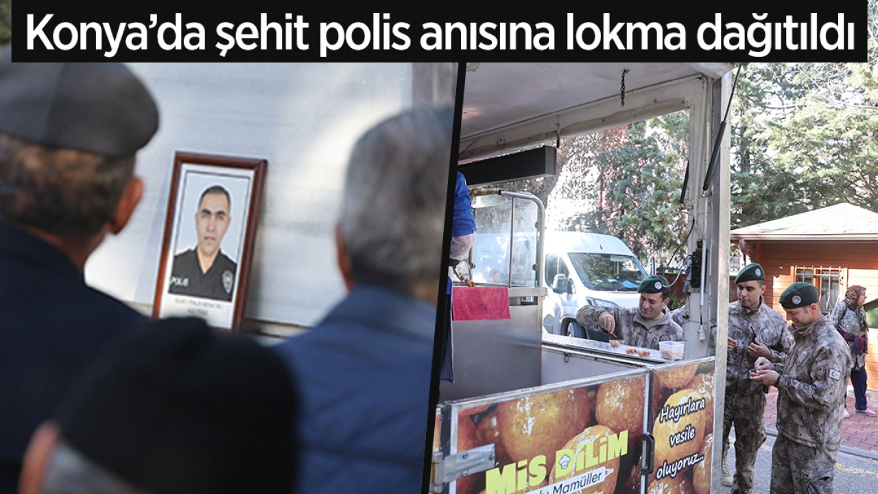 Konya'da 8 Aralık 2018'de göreve giden polis memurlarının bulunduğu olay yeri inceleme aracı ile otomobilin çarpışması sonucu şehit olan polis memuru Ali Teke adına lokma dağıtıldı.