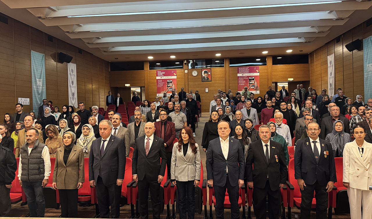 Konya Ticaret Odası Konferans Salonu'ndaki program, saygı duruşunda bulunulması ve İstiklal Marşı'nın okunmasıyla başladı.