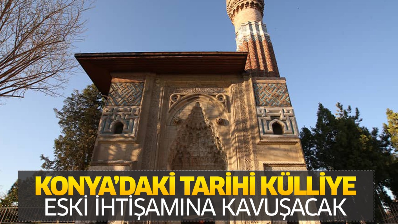 Külliyenin girişinde bulunan Konya'daki en büyük taç kapıda yıkılan ikinci minare aslına uygun olarak yeniden yapılacak. Mevcut minaredeki, cami ve medresedeki çiniler yenilenecek. Ahşap direkli cami, medrese ve türbe de aslına uygun restore edilecek.