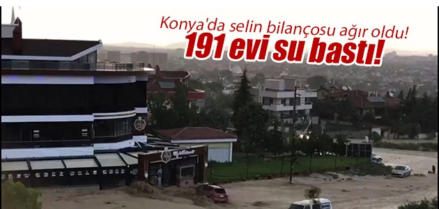 Konya'da dün etkili olan sağanak nedeniyle 191 evi su bastı, bazı binalarda hasar oluştu, çok sayıda hayvan telef oldu.