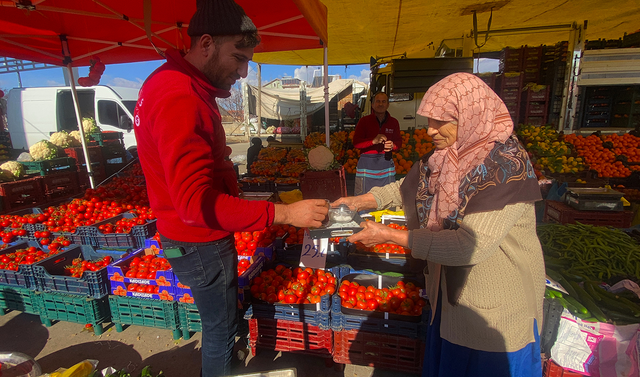 Pazarcılardan Furkan Kula ise Sevim Piliç'in çalışkanlığına dikkati çekerek, "Teyzemiz sabah sobamızı yakıyor, çayımızı demliyor. Ekmek parası için herkesin örnek alacağı bir kadın." diye konuştu.