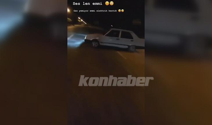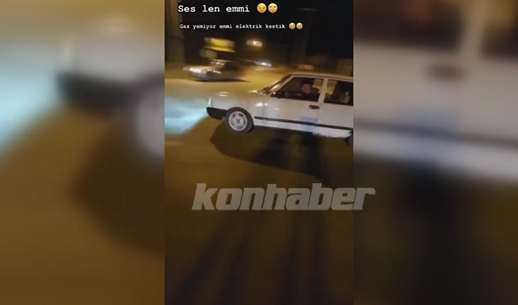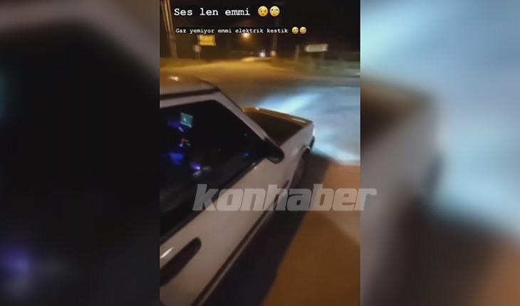 Konya’da trafiğe açık caddede drift yaparak tehlike saçan sürücü, o anları “Ses len emmi, gaz yemiyor emmi elektrik kestik” sözleriyle sosyal medyada paylaştı. Polis kural tanımayan o driftçiye ceza yağdırdı. Sadece para cezasıyla kurtulamayan maganda hakkında adli işlem başlattı.