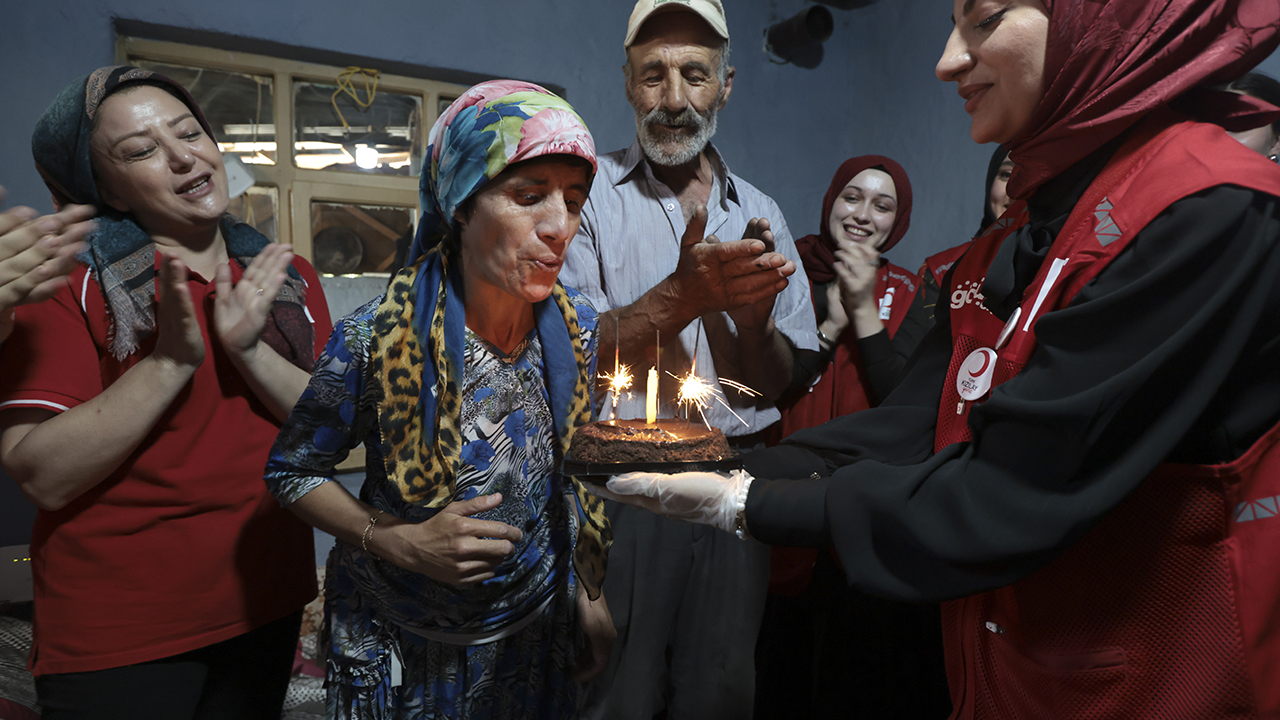 Bu sırada Hanife Ağdaş'ın doğum günü olduğunu öğrenen gönüllüler, yaş pasta alarak Hanife'ye sürpriz kutlama düzenledi.