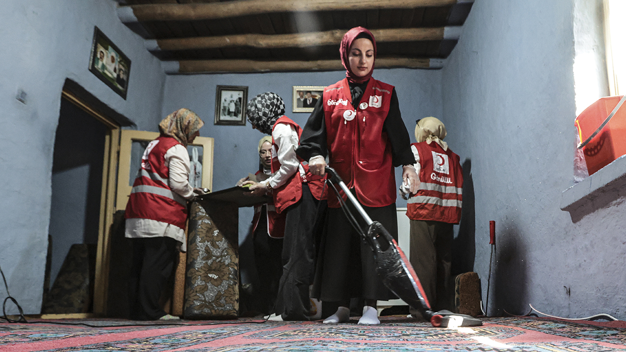 Hanife'ye hediye takdim edilen kutlamada, duygusal anlar yaşandı. Gönüllüler ayrıca evin düzenlenmesine ve temizlenmesine de destek verdi.