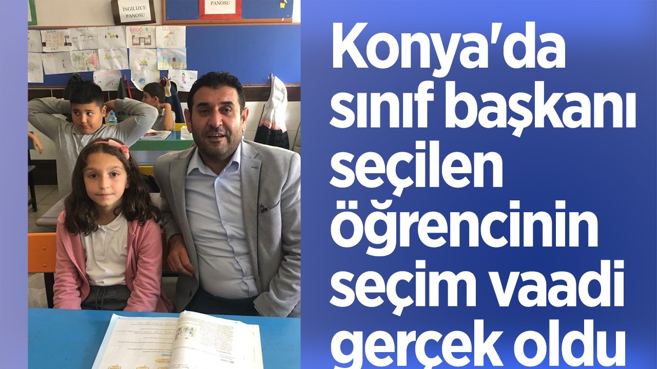 Konya'nın Hüyük ilçesinde Yunus Emre Ortaokulu öğrencisi, sınıf başkanı seçilmek için arkadaşlarına verdiği seçim vaadini gerçekleştirdi.