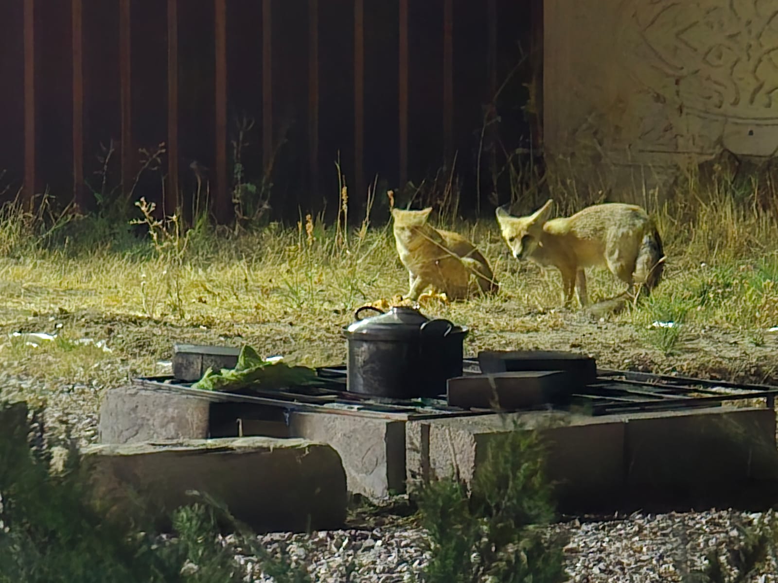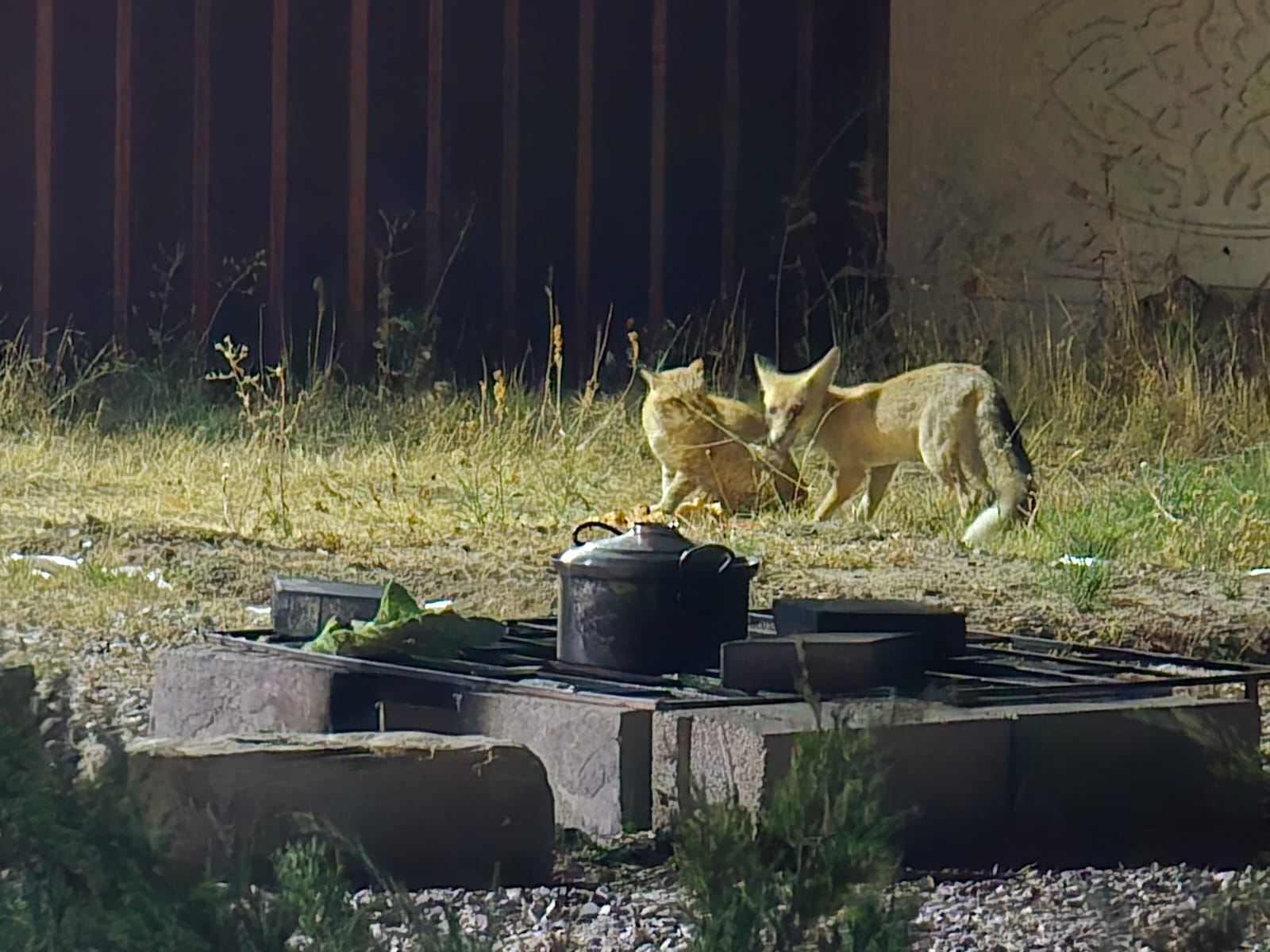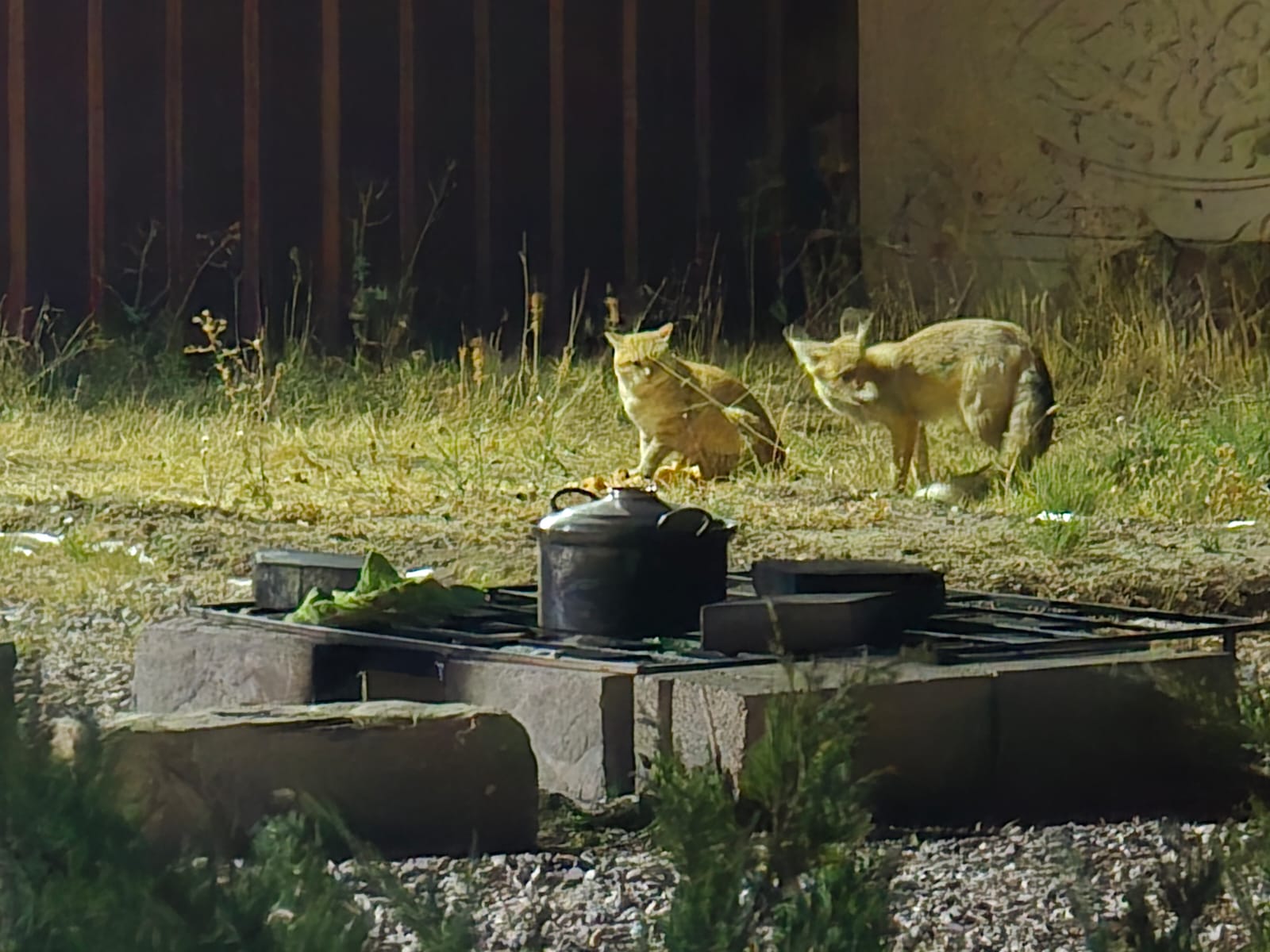 Akşam saatlerinde aç kaldığı tahmin edilen tilki'nin yiyecek aramak için bahçeye geldiği, bahçede bulunan kediyle ise herhangi bir olumsuzluk yaşanmadığı görüldü. Görüntülerde tilki ve kedi'nin sakin tavırlarla aynı ortamda bulunması dikkat çekti.