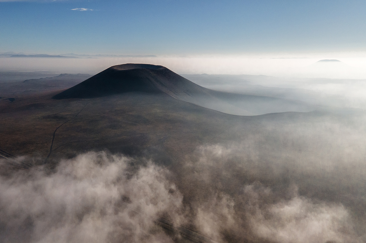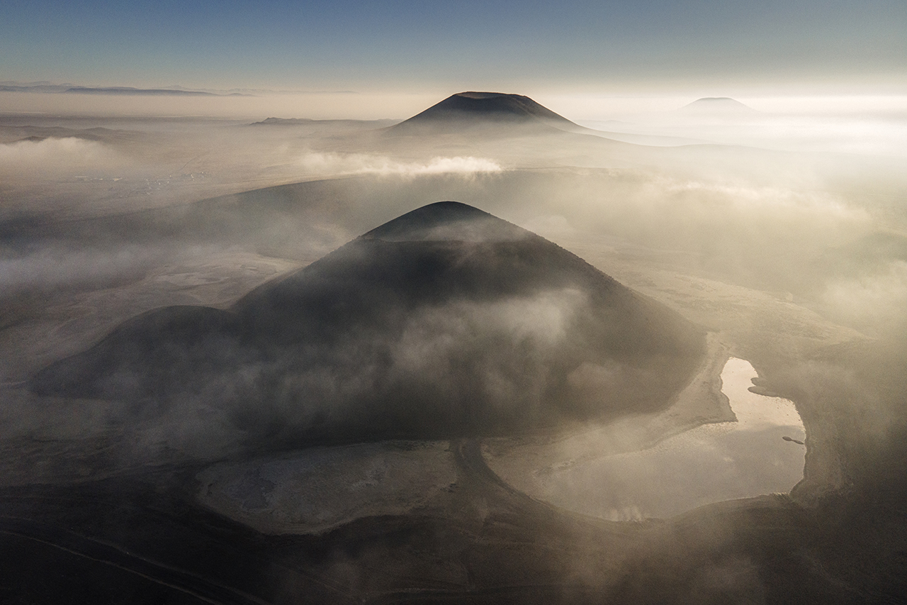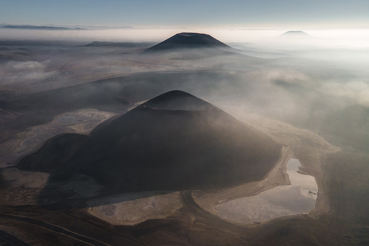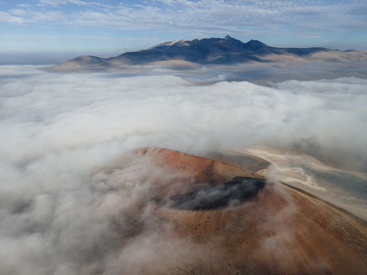 Konya’nın Karapınar ilçesinde bulunan Meke Krater Gölü, sisler içinde görüntülendi.