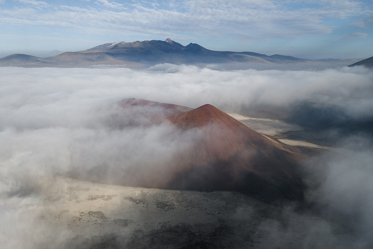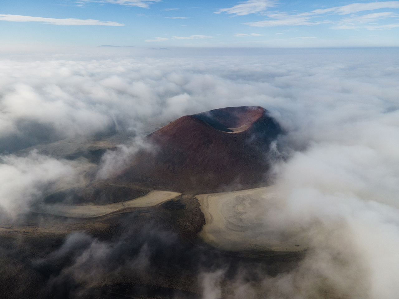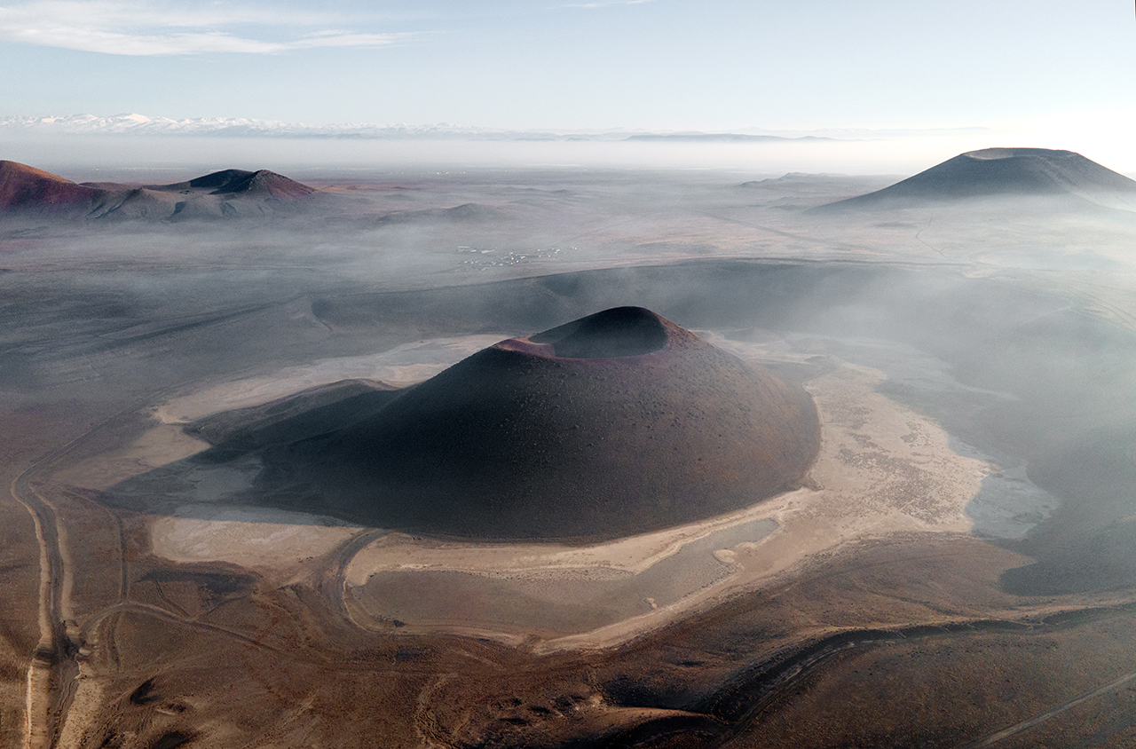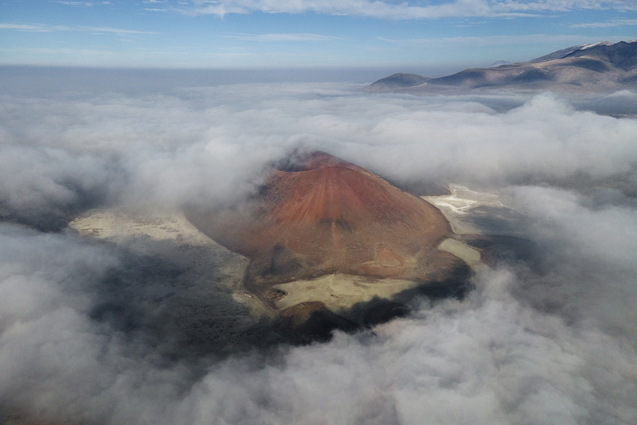Konya’nın Karapınar ilçesinde bulunan Meke Krater Gölü, sisler içinde görüntülendi.